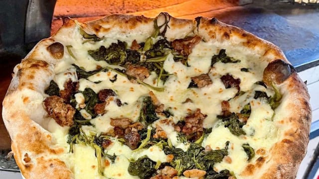 friarielli saltati in padella, salsiccia di suino e provola campana. In uscita: basilico