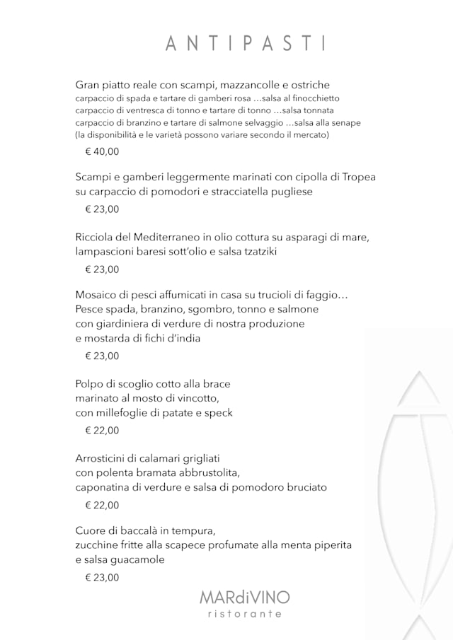 Inside a recently renovated 1800s farmhouse, MARdiVINO''s kitchen offers fresh seafood specialities inspired by Apulian tradition. Do not hesitate to ...