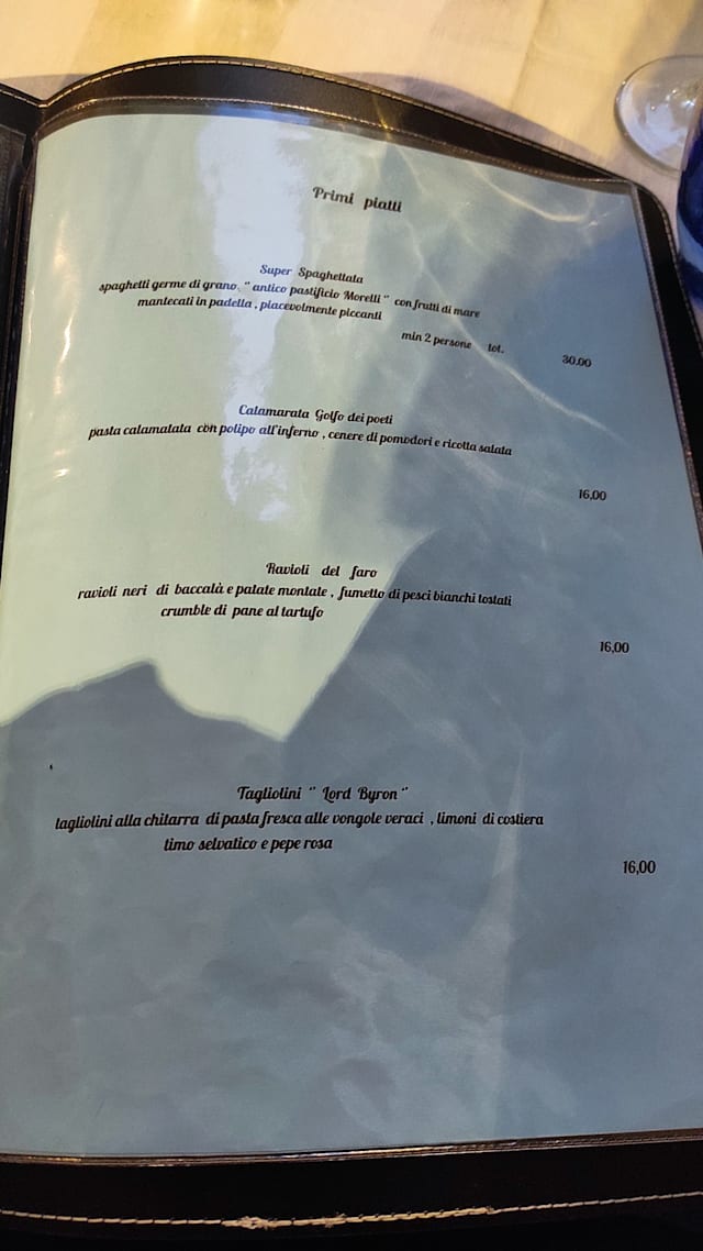 If you plan to eat at Mare Blu - Lerici, the average price should be around €40. The average price is calculated based on appetizer/entrée or entrée/dessert, excluding drinks. Prices have been provided by the restaurant.