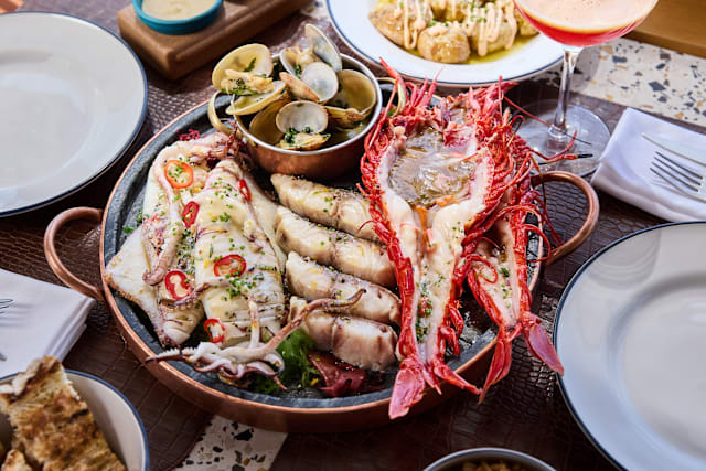Gambas cozidas, percebes, gambas da costa, 1/2 lagosta e amêijoas à bulhão pato