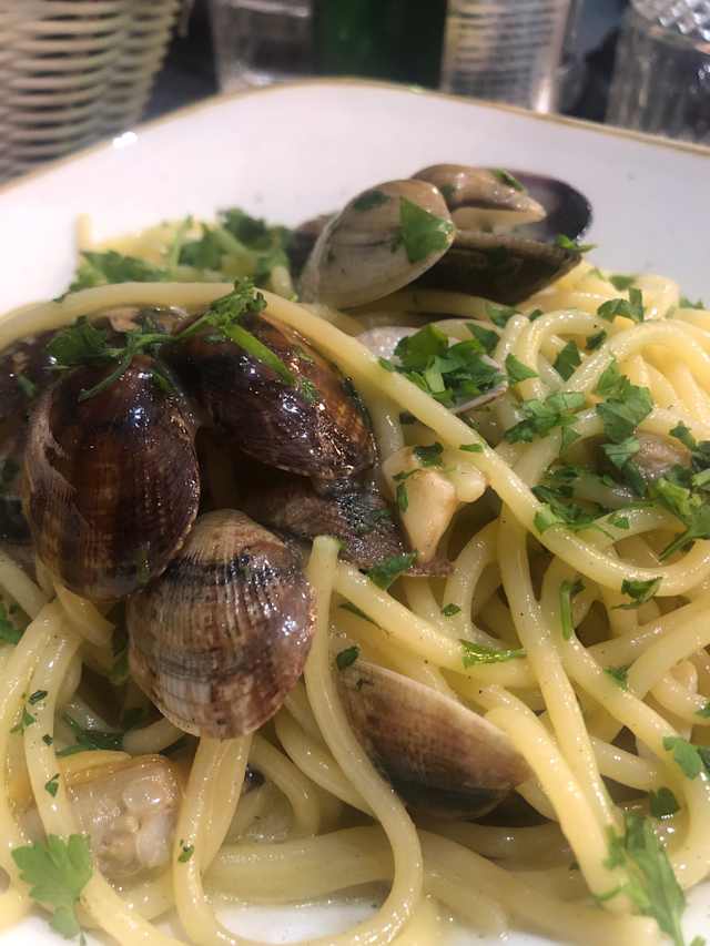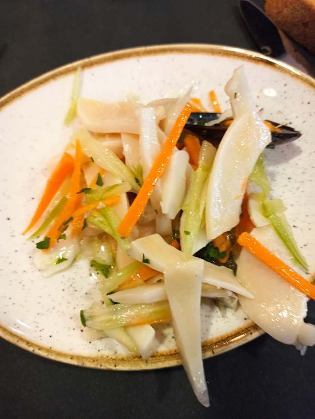- (Cozze, seppie, gamberetti, vongole e prezzemolo)