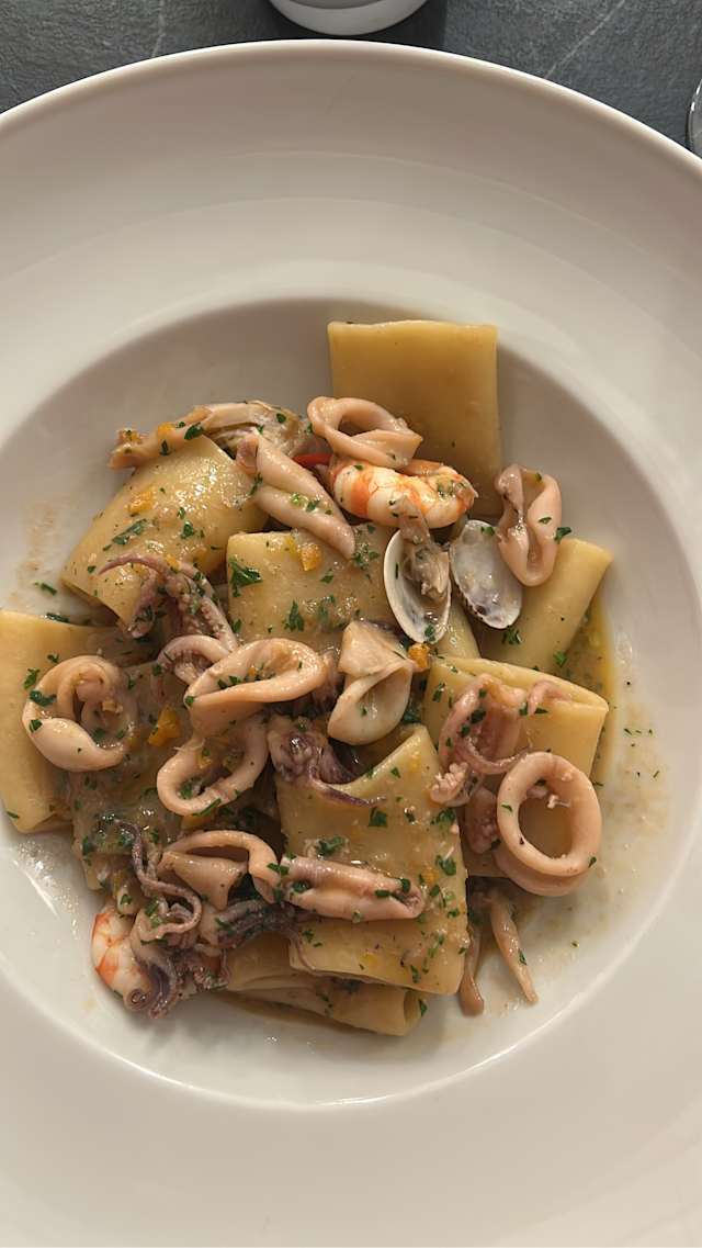 My brother and I had a fantastic meal at Mare Nostrum. The seafood was fresh and every dish was memorable. From the Raguse starter, to the Mezzeluna and Paccheri pastas to the Ancona stockfish soup. Our host was friendly and patient with our questions, and guided us to a delicious and appropriate wine for the dishes we were ordering. We didn’t get to try dessert since we were so full from the meal, but they also looked appealing. Great meal and highly recommended. Thank you!