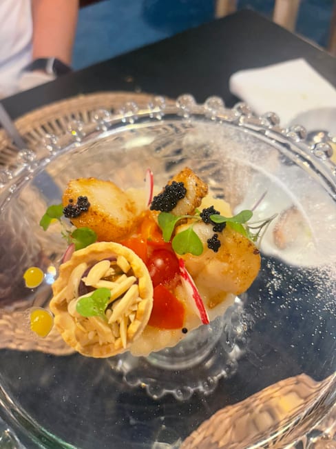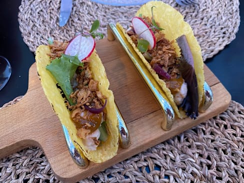 7.5/10My wife has always enjoyed the shrimp tacos here but the recipe seems to have changed and she found them vegan disappointing and not to her taste. The staff did apologise and offered an alternative but by then she had already earned most of it. My scallops were delicious and I enjoyed the seafood polenta although it could perhaps have done with some more seafood. Overall the meal was ok but not as good as previous visits.