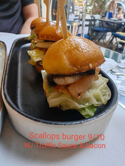10/10They offer many new ideas for food. They serve quite a lot of raw food varieties which give us a nice surprise. Must try their bread witb their own choice of olive oil and vinegar which are really reality good. I live their blu prawns tartar andq the tuna rolls and my husband loves their scallops mini burgers. The fried shrimps and the salmon ceviche are ok, for the squid tagliatelle is ver rich in cheesy and isok for us.
