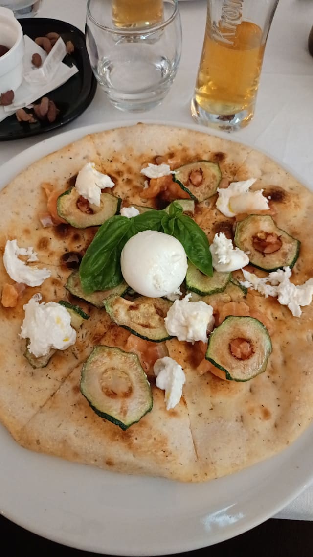 Tartare di salmone**, zucchine grigliate, burratina artigianale