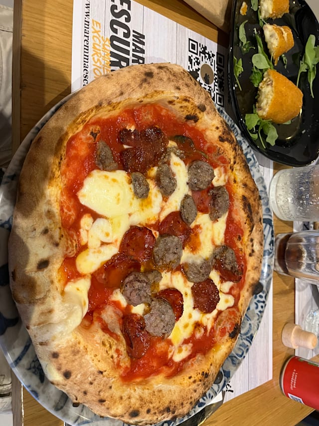 7/10The best thing about Maremma Pig is the pizza, they are all very good! The service is fast but average quality and unfortunately inside the exhaust does not work properly so you can smell the fry and it sticks to your clothes.