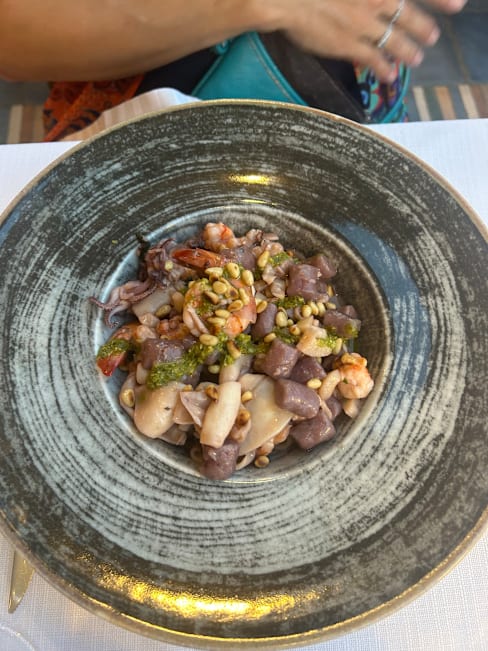 9.5/10It is a nice restaurant with interesting dishes on the menu. Ravioli and grilled octopus with spinach were both fabulous and the portions were generous! We also got free glass of prosecco and bruschetta when we arrived, which was a nice surprise. Definitely recommended if you like fish and sea food!