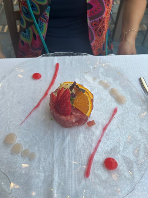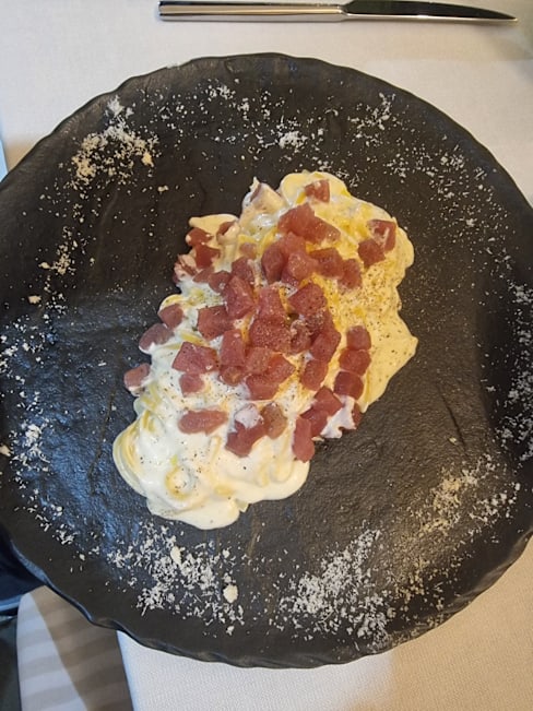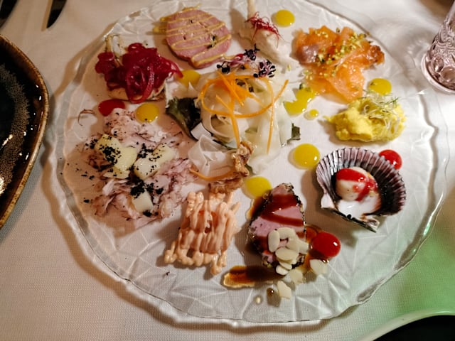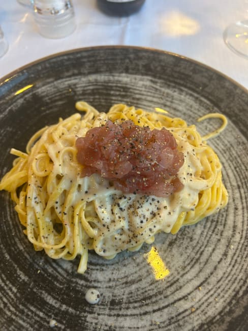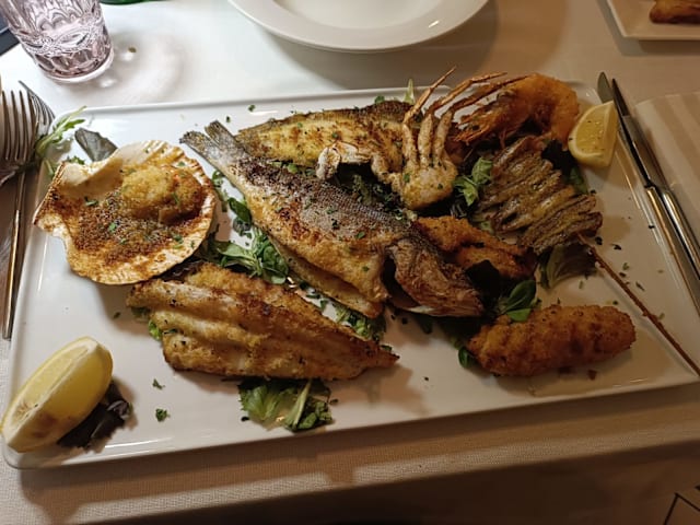 10/10+2The food was very good. We order: - Oysters very good quality with a lot of juices(10 out of 10) - 1 cacio e pepe with tuna tartar. The pasta was very creamy, and the tuna was very fresh. I would rate it 10 out of 10 ( I am a cacio e pepe lover) - Spaghetti alle vongole al Parfumo di moioto. Very creamy and tasty. I would rate it 8 of 10 because the vongole was not perfectly clean, and you can feel a little bit of the sand. - Orata alla mediterranea. Fresh sea bream very tasty perfectly balanced by the souce 10 out of 10 - Super grigliata di crostacei. Fresh and pretty big portion 10 out of 10. Also, they have a very nice selection of traditional sparkling wines ( Franciacorta, trentodoc, and champagne) we choose 2 bottles of Franciacorta the brut and saten from Società Agricola La Fiòca. The saten especially was outstanding.
