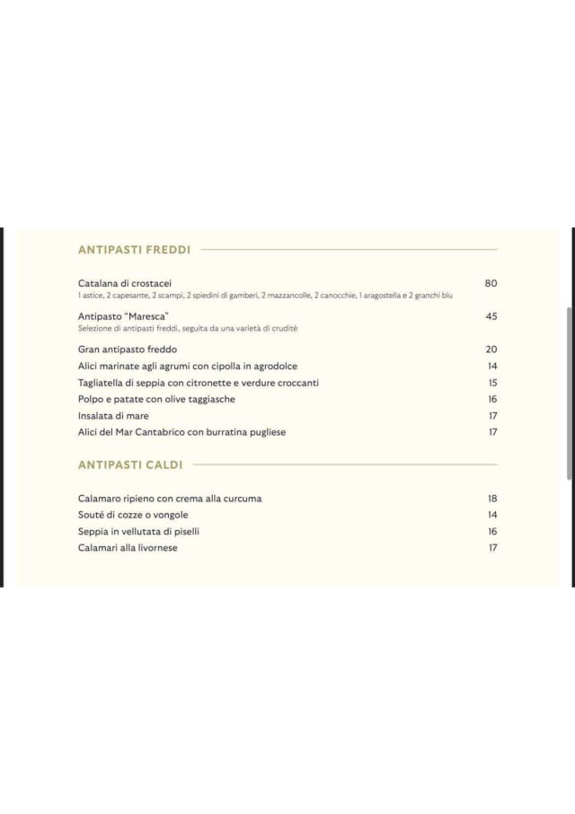 10/10I stayed at maresca with my girlfriend for lunch... and it was simply a wonderful seafood restaurant experience! The menu is really incredible with a lot of different dishes: you can taste a traditional fresh lobster pasta or try some dishes with unconventional mixes, like pasta with shrimps and lime. I love raw fish and the restaurant offers almost all kind of this food: from shrimps to oysters, from sea truffles to scampi. The waiter Michele was great. I will come again to this restaurant to try some other incredible seafood!