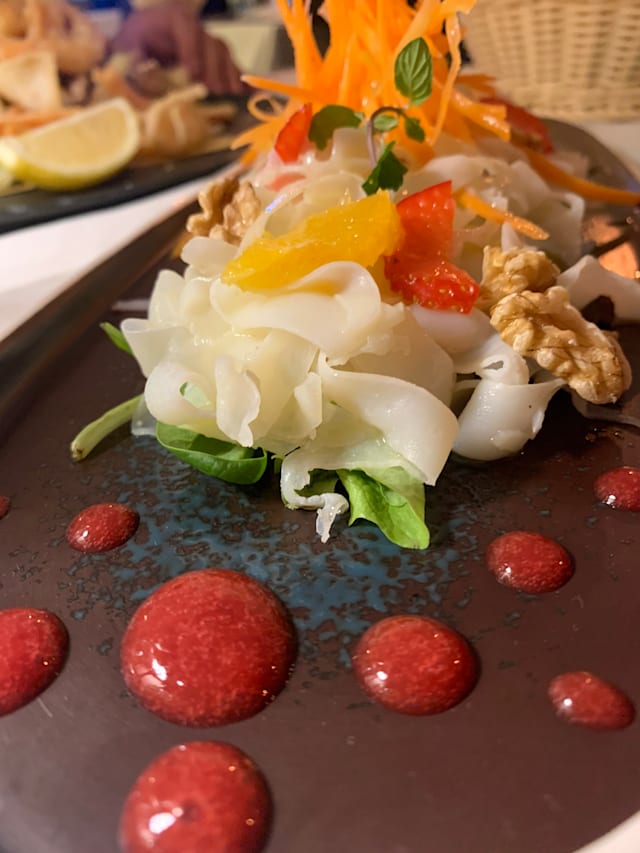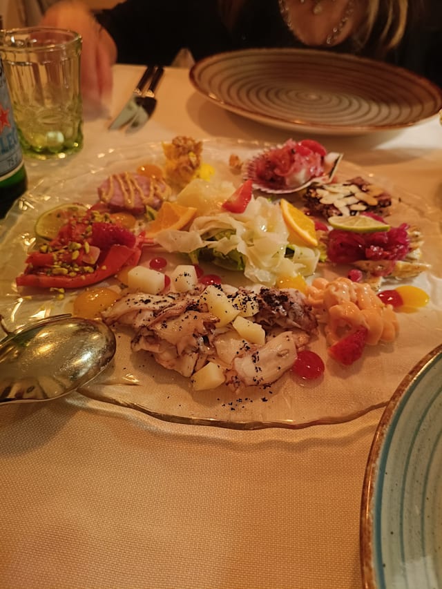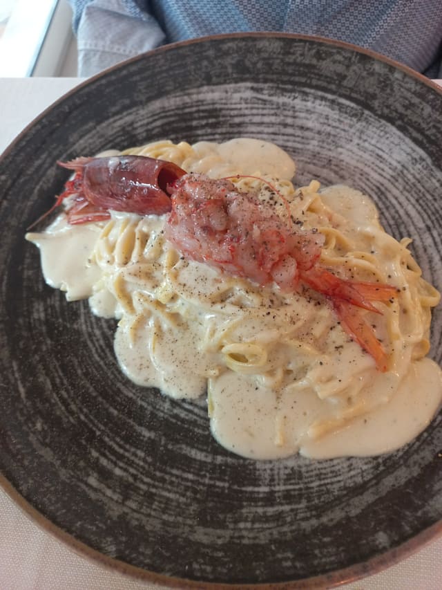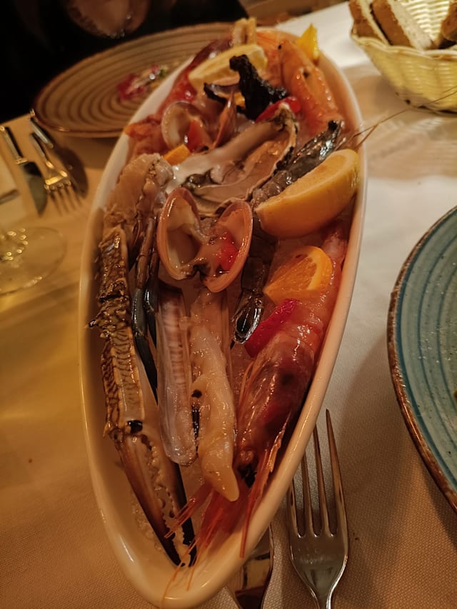 10/10+2The food was very good. We order: - Oysters very good quality with a lot of juices(10 out of 10) - 1 cacio e pepe with tuna tartar. The pasta was very creamy, and the tuna was very fresh. I would rate it 10 out of 10 ( I am a cacio e pepe lover) - Spaghetti alle vongole al Parfumo di moioto. Very creamy and tasty. I would rate it 8 of 10 because the vongole was not perfectly clean, and you can feel a little bit of the sand. - Orata alla mediterranea. Fresh sea bream very tasty perfectly balanced by the souce 10 out of 10 - Super grigliata di crostacei. Fresh and pretty big portion 10 out of 10. Also, they have a very nice selection of traditional sparkling wines ( Franciacorta, trentodoc, and champagne) we choose 2 bottles of Franciacorta the brut and saten from Società Agricola La Fiòca. The saten especially was outstanding.