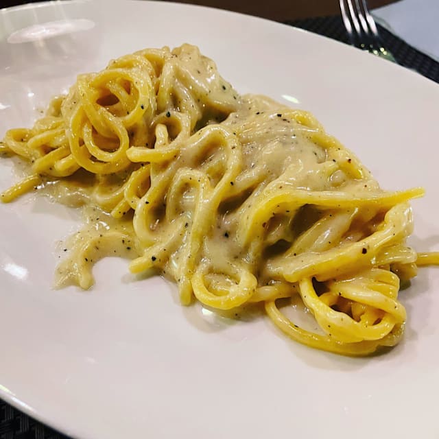 6/10The restaurant was cute but I was disappointed with the food—I just ordered a simple pasta with cacio & pepe for lunch but it didn’t seem fresh at all. The noodles were hard and all stuck together—it almost seemed like it had been cooked the night before and heated up in a microwave or something.