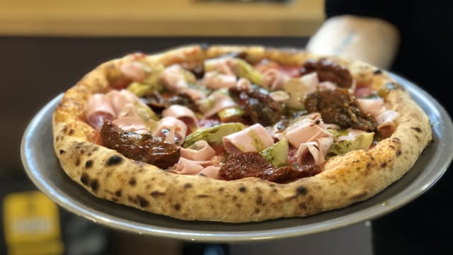 Mozzarella fior di latte, pomodorino secco, granella di pistacchio, capocollo di martina , burratina di puglia