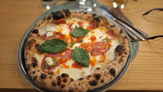 Pomodoro, mozzarella fior di latte, nduja di spilinga, stracciatella fior di latte