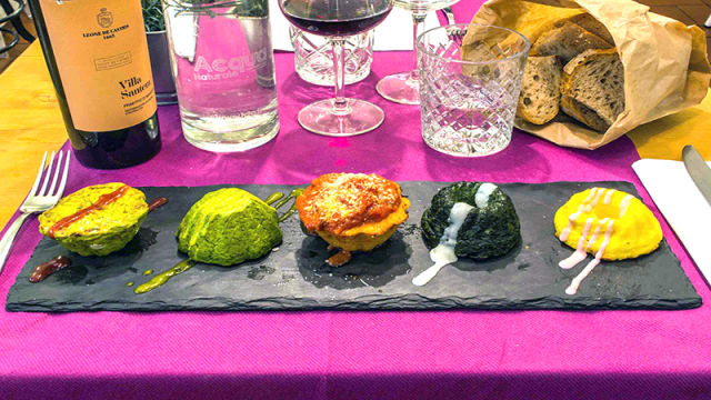 7/10Food was underwhelming. Aperol Spritz was 8€ on menu charged €9. Didn't get fork discount until we asked . Was disappointed- heard such great things and luckily dined with great friends