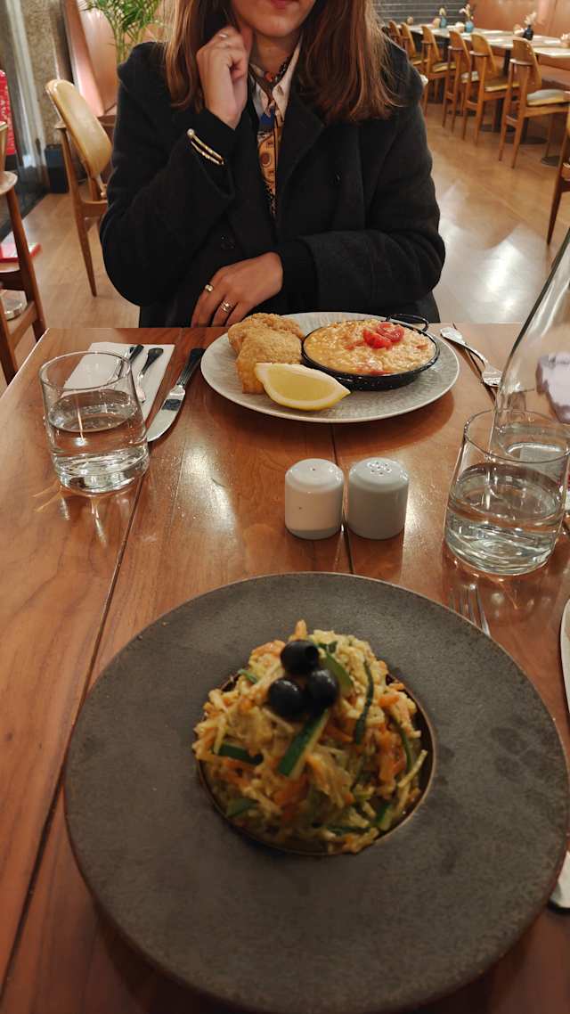 - Bacalhau à brás, salada verde