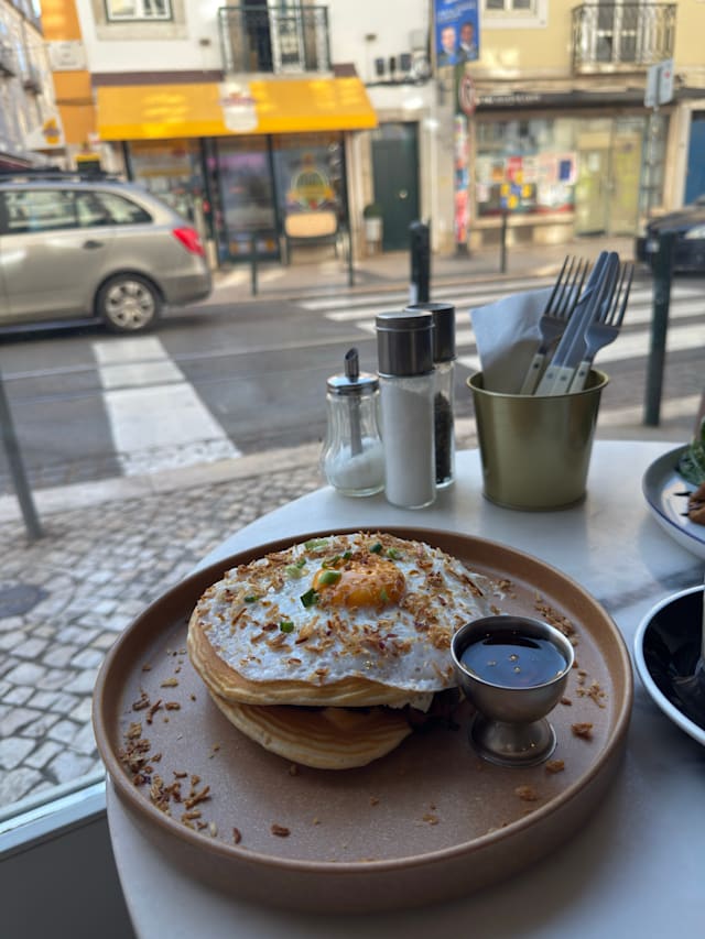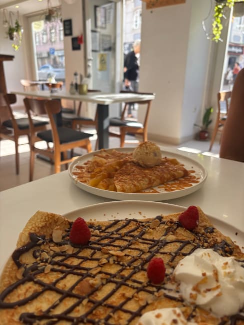 10/10+4This is one of my favorite cafes in Lisbon, always offering a wide variety of brunch dishes and consistently kind and polite service. I love having the pancakes here, but there are also plenty of other delicious crepe-based options to choose from. Such a great place!