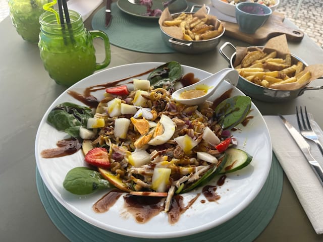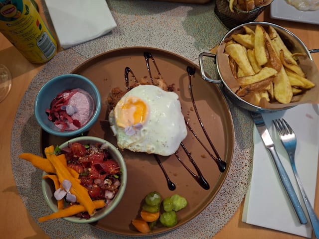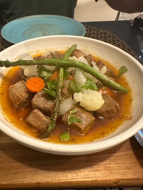 10/10Delicious food, friendly service, lovely cosy ambience and dog friendly. We had a very nice table near the window and our little dog happily watched the world outside. We ordered braised tuna with potatoes and vegetables. The flavours were amazing! And it was nice to have proper vegetables 😀 Portions are very big, we shared but would be enough even for 3 people (4 if you also share a salad which was also delicious). Basically, come with a big company, order to share and you’ll enjoy delicious food for a reasonable price ! 👍