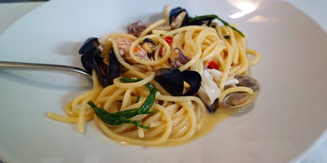 10/10Nestled in a quaint corner, this charming Italian seafood restaurant offers a delightful dining experience. With its cozy ambiance and limited seating, it provides an intimate setting perfect for savoring the simple yet exquisite flavors of the sea. The menu features fresh, high-quality ingredients that shine in every dish. The seafood is undeniably the star of the show, cooked to perfection and bursting with flavor. Despite the limited dessert options, each is a testament to quality over quantity; the lemon sorbet is refreshingly tart, while the sliced cream cake is creamy and decadent. The prices are reasonable, ensuring a fantastic value for such exceptional food. This hidden gem is a must-visit for those who appreciate the finesse of well-prepared seafood without the frills. / Situato in un angolo pittoresco, questo affascinante ristorante di pesce italiano offre un’esperienza culinaria deliziosa. Con un’atmosfera accogliente e pochi posti a sedere, offre un ambiente intimo perfett