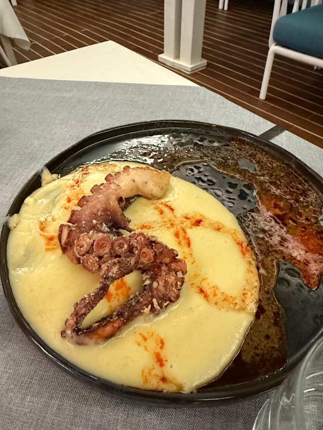10/10This was a very pleasant surprise. The location in the port was great watching the vessels come and go. Everyone enjoyed their dinners. The crunchy bluefin tuna was very tasty, not fishy. The cod tempura had a good batter, and the fish was flaky. The grouper with pasta was a nice change of pace. We started with zucchini blossoms with Tropea onions, and battered anchovies - really good! For dessert the cannoli were in a deconstructed form and of course we loved it. The wait staff were very friendly yet professional. It was a lovely evening with a pleasant sea breeze which was greatly needed due to the heatwave. I highly recommend visiting this restaurant. Away from the crowds in the old town. Easy to make reservations online.