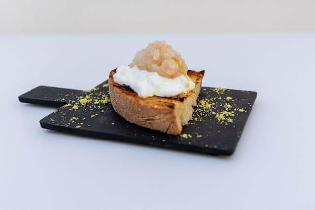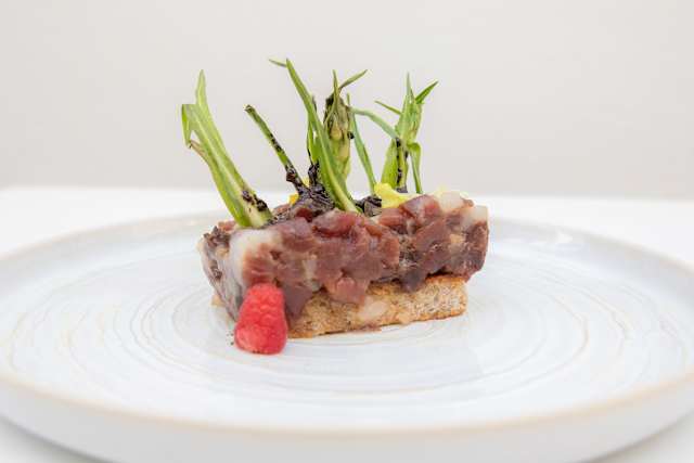 - Carpaccio di tonno rosso, pasta soffiata, stracciatella e gazpacho di pomodoro