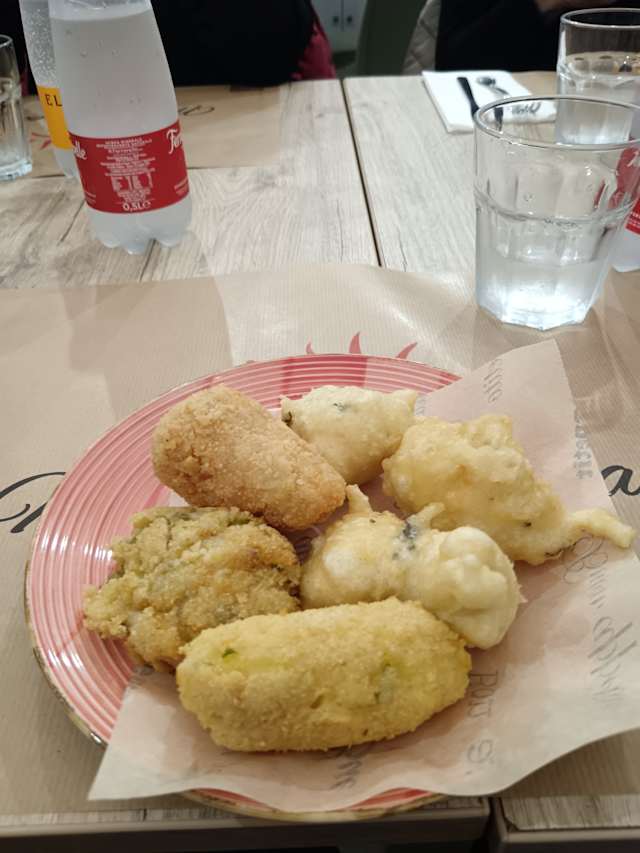 Composto da patata rossa, grana padano, prezzemolo, provola di agerola, sale e pepe, il tutto avvolto in pastella e pane grattato