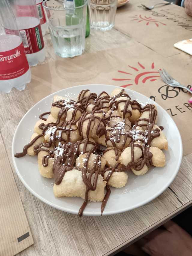 Palline di impasto fritto, zuccherate e farcite con nutella