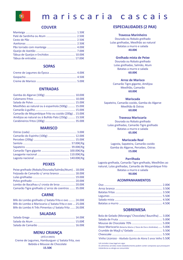 5/10Disappointing and expensive for what you're served. Sea food had no taste at all and mussels and shrimps on the "Mariscada" dish for 2 people were really tiny, Really far from the quality of food that Portugal is famous for...