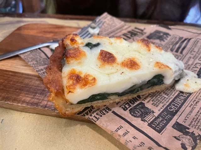 Pane in cassetta semintegrale homemade senza lattosio bagnato in uovo e bevanda di avena e dorato in padella con burro, farcito con capocollo dei nebrodi e tuma fresca locale, sale, olio evo e pepe nero