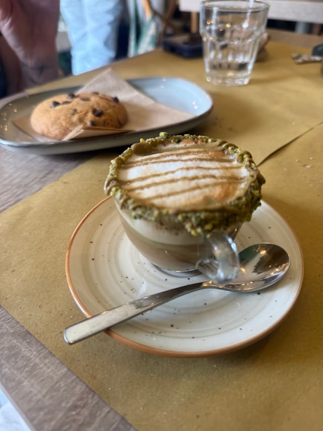 Espresso, doppia schiuma di latte, disponibile anche vegan.