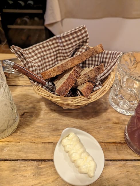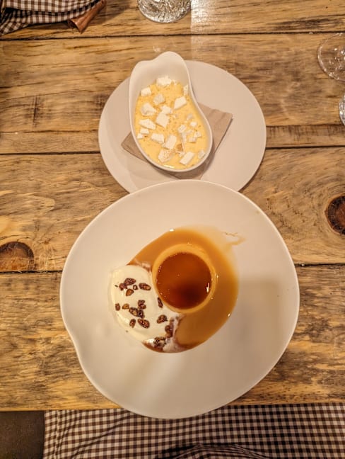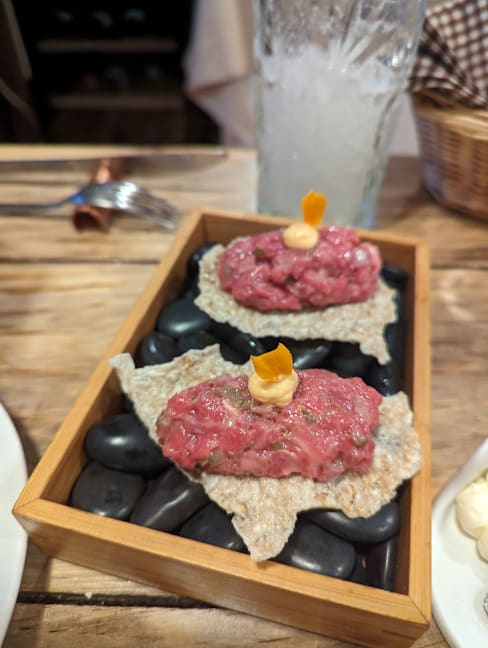 9.5/10+2The restaurant is small and a little crowded, but the décor has its own style and traditional design. The waiters were very friendly and helpful, and they explained each dish to us before served it. We ordered Steak tartar, Bogavante, Cochinillo and Pato, all of which were delicious. My personal favorites were the Bogavante, which was very creamy and flavorful, and the Pato, which had a lightly charred skin and very tender meat. Before we finished, we also ordered the Lemon pie and Flan de cabra, both of which had very original flavors. It's a lovely little bistro! Ideal for small gatherings with friends and family, the atmosphere is very intimate!