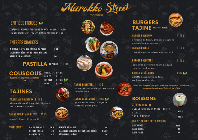 Marokko Street is identified as offering moroccan cuisine.