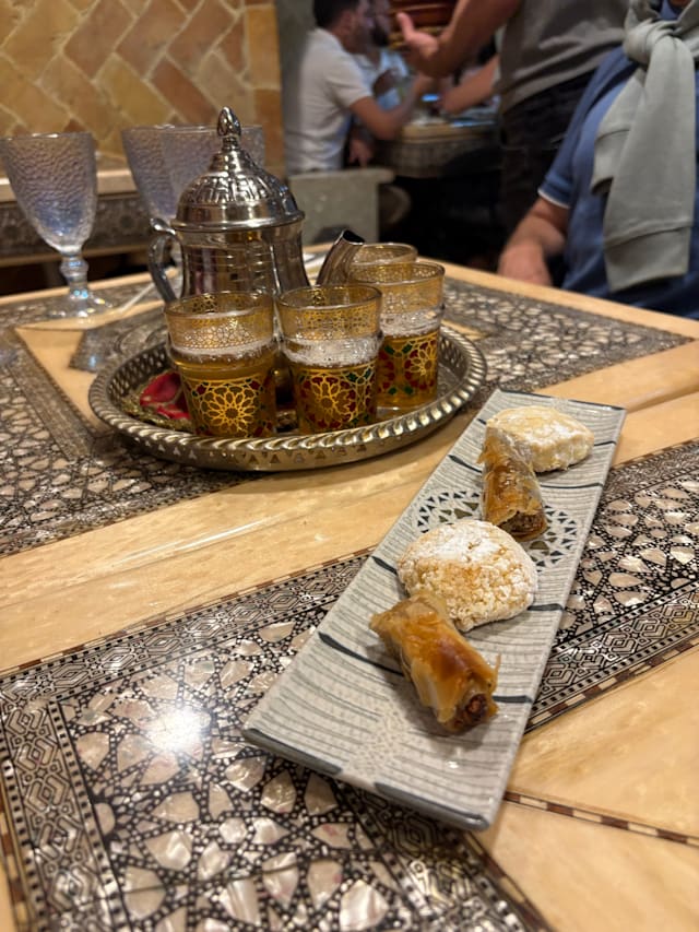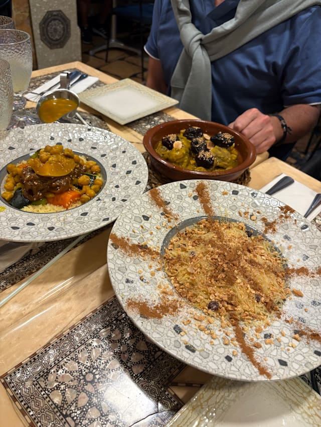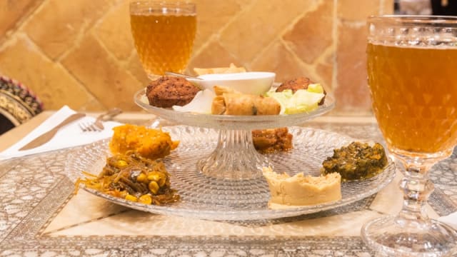 6.5/10We arrived on time for our reservation and were seated promptly — and that’s where the good experience ended. It took about 12 minutes before anyone brought us menus. We placed a very simple order (bastel and falafel, water and tea). Drinks came quickly, but we waited over an hour for the food. Eventually, we approached the waiter to ask what was going on, and it turned out they had forgotten to send our order to the kitchen. In the end, we waited 1 hour and 15 minutes for two very simple dishes. That’s completely unacceptable. The food was tasty, but with service like this, it’s hard to want to come back.