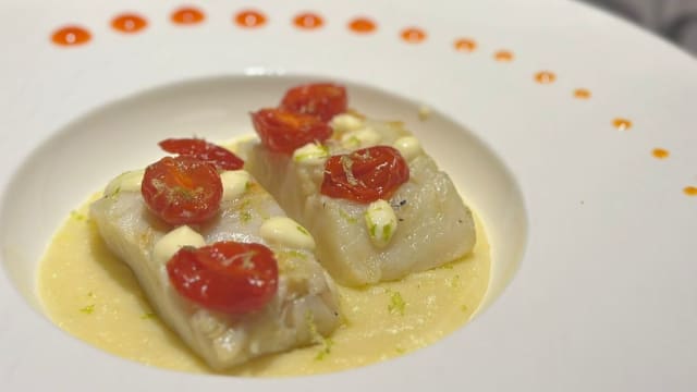 Pesce bianco, condito con olio al tartufo e sale maldon