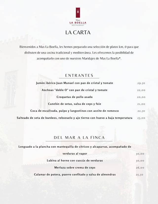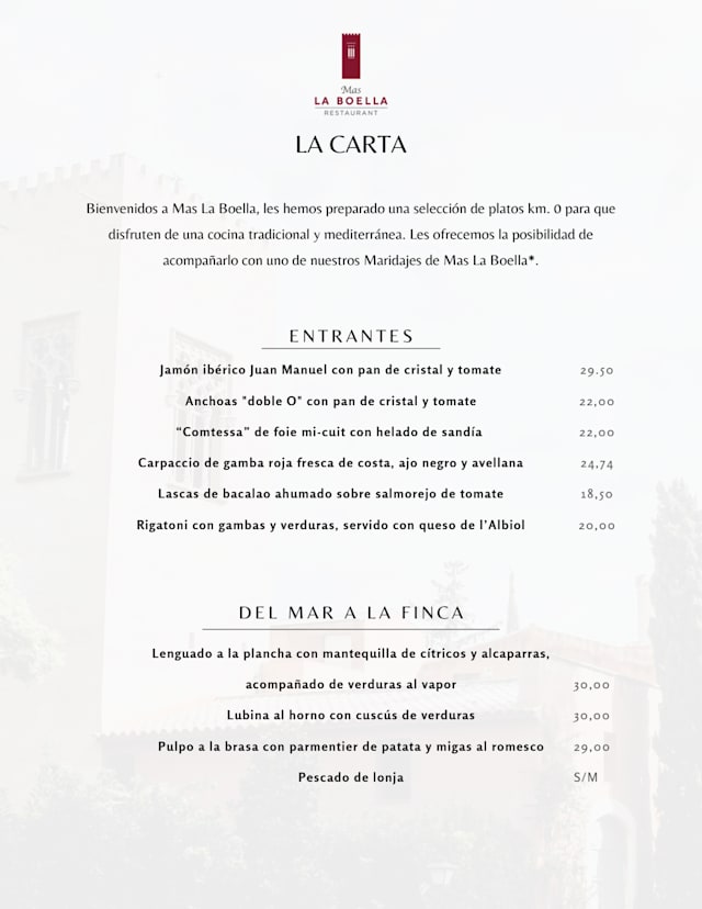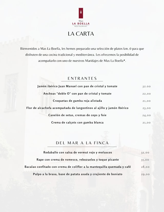 10/10I recently visited Mas La Boella restaurant and was thoroughly impressed by their Mediterranean cuisine. Every dish we tried was exquisitely prepared using fresh, local ingredients. The tasting menu, in particular, showcased culinary masterpieces. The elegant interior and beautiful terrace create a perfect setting for an unforgettable meal. The service was also exceptional, adding to the delightful experience. I highly recommend this restaurant to anyone who appreciates high-quality and delicious food.