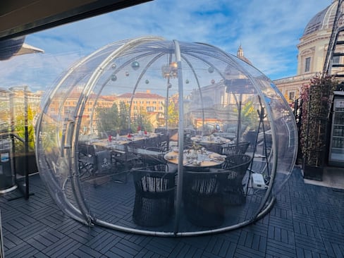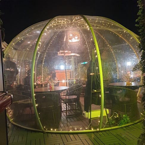 8/10Some of the 7 course meal option was amazing and some was not so amazing. Overall, I enjoyed the vibe, but was a little saddened that everything was completey enclosed with no visual ability of the "rooftop" views in early Spring. The location was closed in with plastic enclosures which provided no "view" as a "rooftop" restaurant.