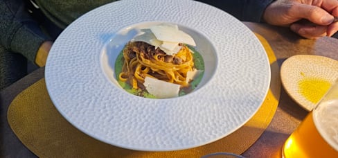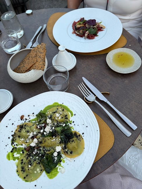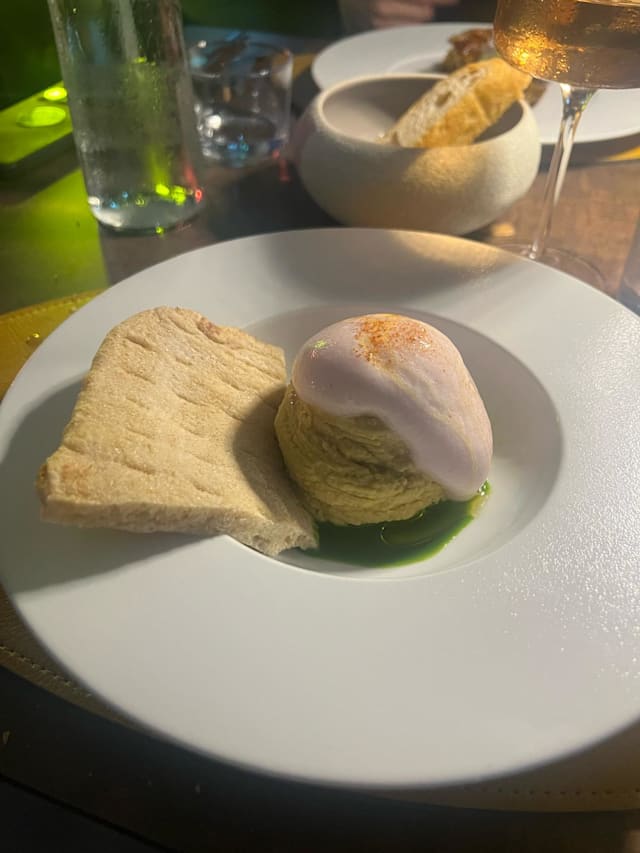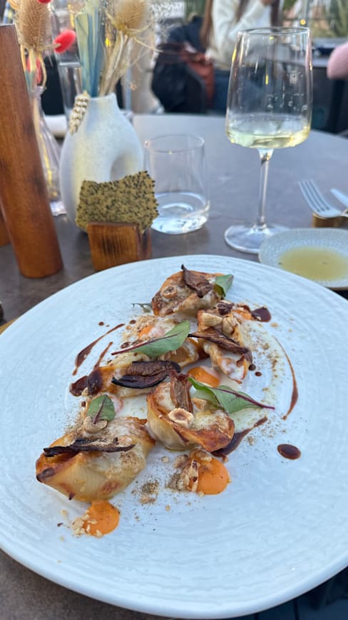 6.5/10Food tasted really good, albeit very small portions. We were kindly given some extra small plates which was a nice treat. Good recommendations for the wine from one of the servers (the initial bottle we wanted wasn’t in stock so discussed good alternatives). The location is on the rooftop of a lovely hotel and the sunset views were fantastic. We had two different servers throughout our meal, one of which was quite rude and curt with us, which was a damper on our anniversary dinner but wasn’t the end of the world. If we hadn’t had The Fork discount, the meal wouldn’t have been worth the money/value for the portion sizes.