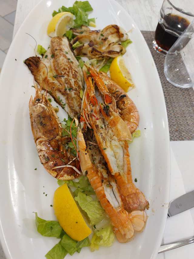 - Scampi, gamberoni, calamari e filetto di orata