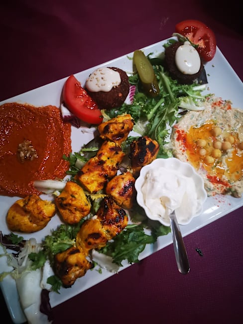 9.5/10they have a large menu with many options to combine and even preset platters of both meat only and vegetarian only mains. The spices used on the meat platter were on point! The creams as well. The falafel was very crispy but missed a bit of taste. The only thing I didn't find great was their baklava, but their mint tea was a good decision. The service was great and fast. Overall, I highly recommend it specially good for groups.