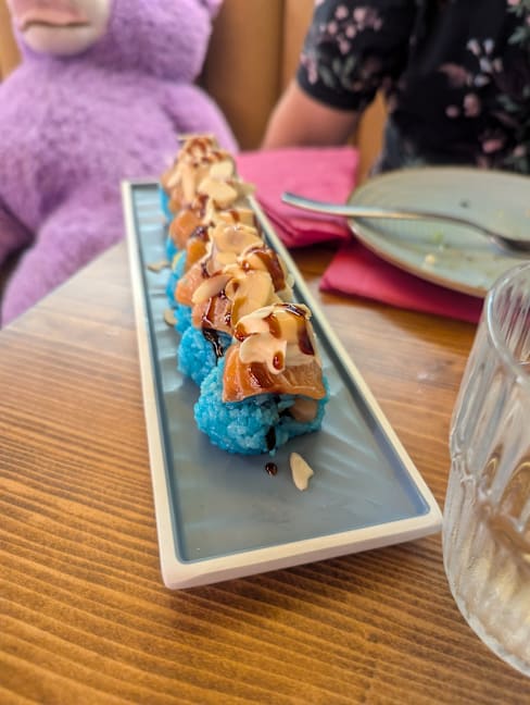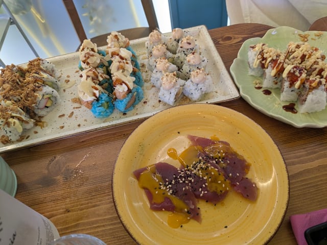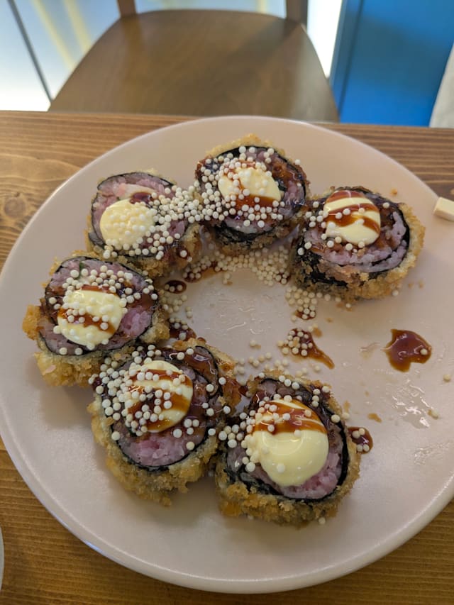 5.5/10Well, the rolls look interesting and very bright. But they bring nothing to the table except the presentation. They tried to make a symphony of different tastes, but instead made a mess of them. I ordered 4 different rolls and gyoza and NONE tasted good. The place is really pretty though. If i was them, i would change the concept from sushi to some hawaiian theme dishes. Like fried rice in pinapples and stuff like that.