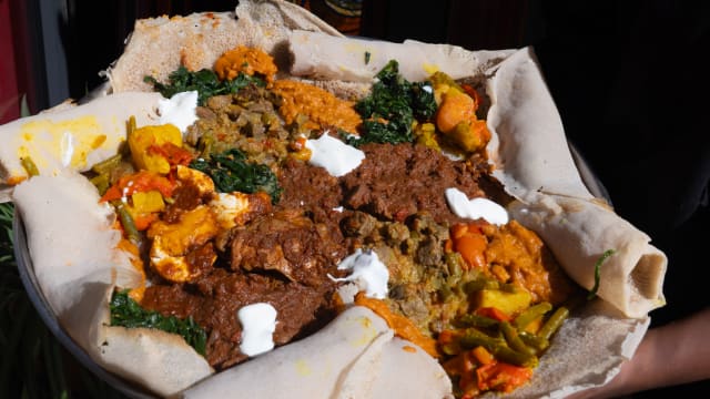 Tumtumo: salsa di lenticchie rosse / hamli: salsa di verdure cotta / shirro: purè di ceci in salsa / alitcha: fagiolini, peperoni, patate e carote
