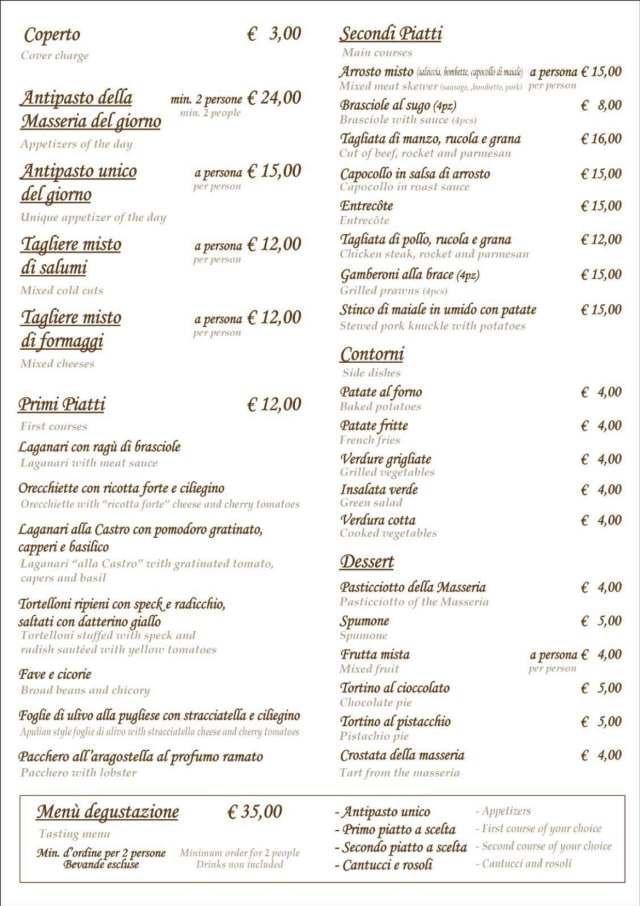 10/10The whole visit was perfect! The Masseria is beautiful, such a lovely place to experience. The service from our waitress was excellent, she was so kind and efficient. They even made us a separate sauce on request which was really appreciated, anything we asked was no problem. We felt so relaxed and comfortable. The food! Oh wow! Easily one of the best meals we've had. So fresh, the taste of everything was incredible. Great menu with lots of choice of interesting dishes. Presentation beautiful, generous portion size, everything was cooked to perfection. The homemade Limoncello at the end was a lovely touch also. Great value for money too. So glad we found this place, we will absolutely return when we are in Cisternino again and would 100% recommend to everyone. Thank you for a wonderful night!