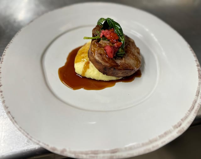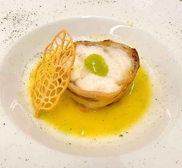 Capocollo, fondo di vitello, salsa teriyakí e gel di cípolla rossa