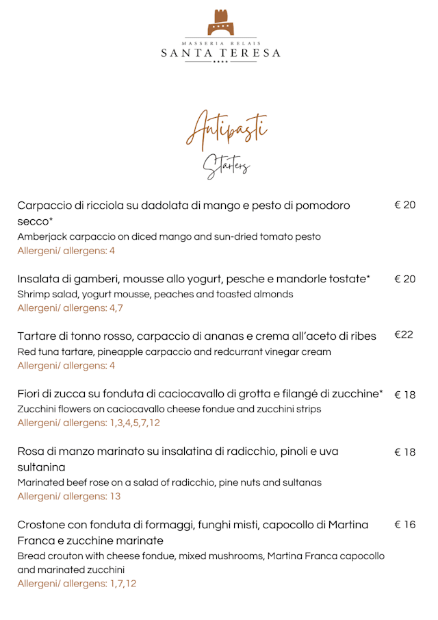 Masseria Relais Santa Teresa - Ristorante LA CORTE is identified as offering italian cuisine.