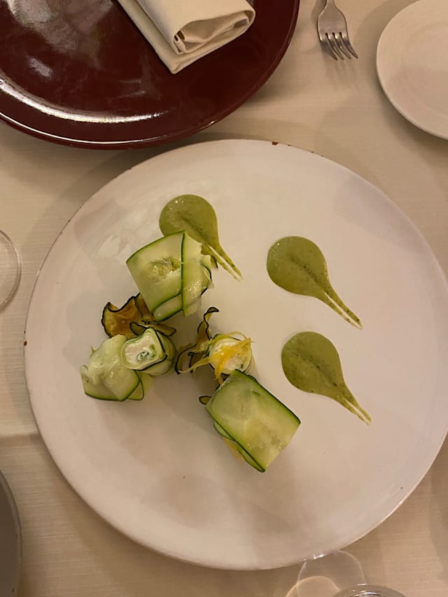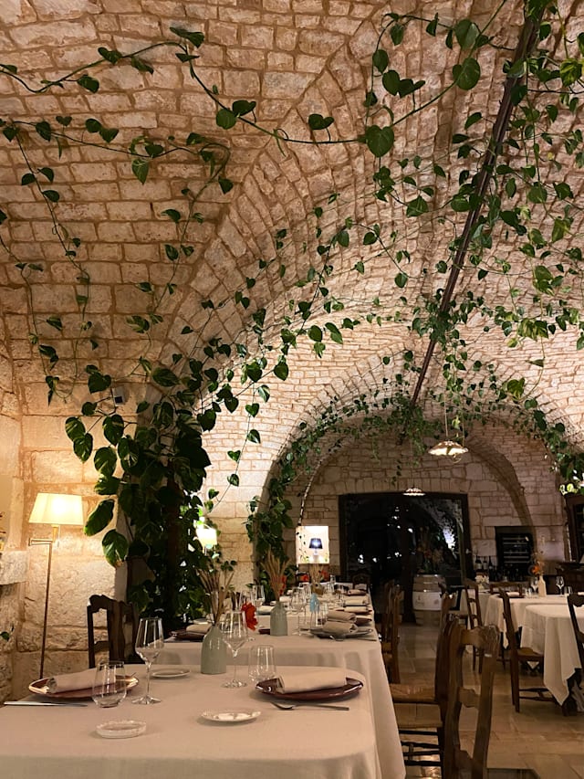 6.5/10While the staff was super welcoming and gave us a tour of the masseria before lunch, the lunch itself was disappointing. The room was very hot (maybe the AC wasn't on?) the plates were chipped and despite being half empty, the service was non-attentive and the food was not memorable. Even though they showed us where the bread was being cooked, we had to ask for bread. We so wanted to love it, but it just wasn't special in any way.
