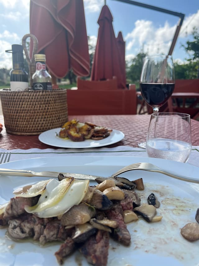 Lovely setting! Communication in English was a bit challenging at the table, but everyone was lovely and the food was very good. Beware, portions can be large. The tuna steak was massive. We also ordered a side of potatoes and no one told us they already came with my meal. A tad expensive, but all in all a nice experience.