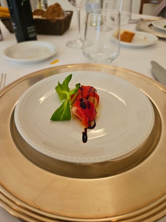 Carciofi freschi, olive taggiasche, pinoli, scaglie di parmigiano, olio evo, limone e riduzione di balsamico