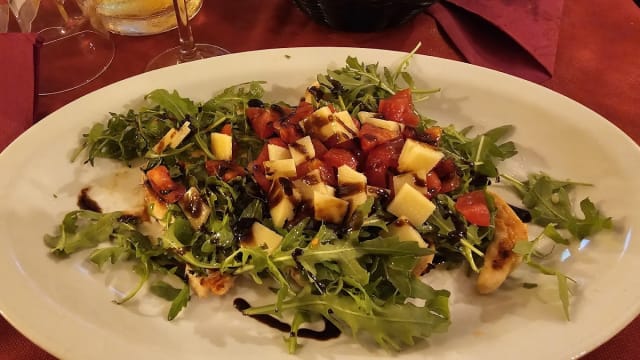 Tagliata di manzo dell'agro pontino con rucola grana pachino e glassa