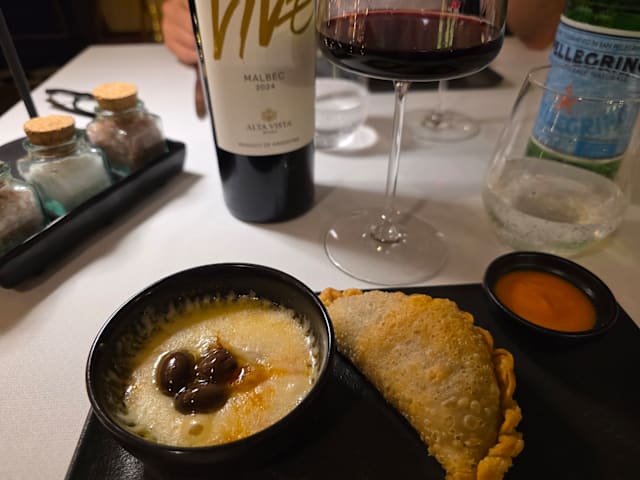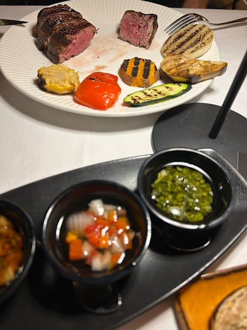8.5/10I really enjoyed the time I spend in there, meat delicious no words ,some tartare options in menu was not exist. Empanadas pollo is amazing, highly recommended! Contrèfiletto was delicious! I can’t say the same for chocolate torta was extremely heavy ,we had to let half ! Camerire was really kind and explained all plates he bring us , just the woman one was so arrogant also to the other workers too behavior I would prefer more sympathy actually. Rest of workers and their behaviors was good . I went with fork %50 discount. Paid 2 person total with two glass of wine -60 was discountapplied 85 euro paid . Without discount I don’t think I would go ! You should try for sure nice meat Restaurant. For special nights , inside extremely well designed and classy