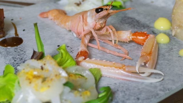 Scampi, gambero viola, julienne di seppia, tonno, pesce spada e salmone selvatico marinati con agrumi e oli delicati