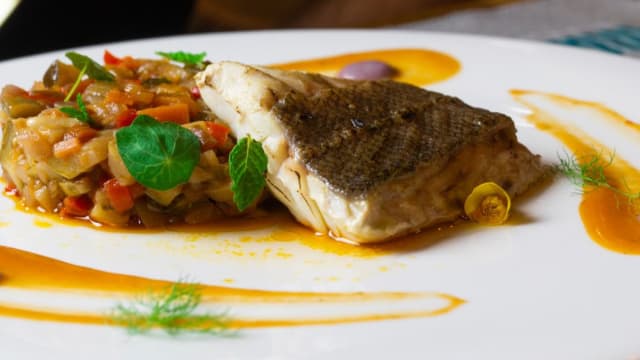 Filetto di baccalà morbido, pomodorini confit, capperi e olive taggiasche